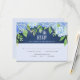 Det här bröllopet OSA har vattenfärgsblå vattenblåblommor och grönbläckfisk löv på en marin blå bakgrund med mynningen burk sträng ljus. Det har också måltider. Det finns även andra matchande bröllop-kontorsartiklar tillgängliga.