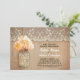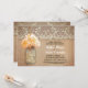 Cute Rustic repetition middag-inbjudan som ger mason burk med persikoartad orange färg hydrangea-blommar. Perfekt inbjudan för land-repetitionsmiddag med vintage snöre och tryckta träaccenter.