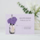 Perfekt för en landsbygdbröllop eller kanske om du bara älskar Masonburkar! Masonburk upphängd i en krok fylld med hortensior. En ljuslila (Z263) bakgrund med mörklila (Z2627) blommor. Om du har några frågor om denna design eller vill ha en färgändring, vänligen maila mig paula@labellarue.com Kolla även in RSVP-, RECEPTION- och GÄSTKORT för att matcha!