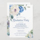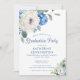 Elegant Hydrangea Ro Blommigt Studentfest Inbjudan: delikat vattenfärgsblåa vattenområden och vit ros och ponnyer ram kant på detta vårkort. Anpassa enkelt för att ändra år, namn, typsnitt osv. Kontakta oss på cedarandstring@gmail.com om du behöver hjälp med designen eller matchningsprodukterna.