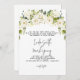I den här inbjudan till elegant bröllop finns handmålade vattenfärgsvita blommigtar, vattenskog och vackra gröna grejer.