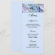 Menykortet visas på vit baslinje med ljusblå färg med en ljusblå bakgrund och en färgstark vattenavtryck på pappra. Skript och standardtext i light Black. Anpassa menyalternativen till dina egna genom att klicka på Anpassa, leta upp höger och hitta lämpliga rutor för att ändra informationen. Jag önskar dig bäst önskemål för din Bröllopsdag.