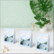 Bröllopet visas i blått med en fotoavskrift av söt hydrangeas och med en vit bandbåge. Anpassa det här objektet eller köp som det är.