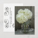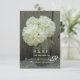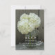 En bröllop OSA som innehåller ett foto av en burk av vita vattenramper över en bakgrund av barwood på framsidan. Vit text. På motsatt sida finns mörk grått-text. Leta efter matchande inbjudningar på Jill's Paperie.