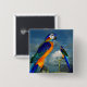 Vibranta, unika och konstnärliga tropiska 3D-makor med färgade fjädrar i blått, grönt, orange, gult färg i vild under blå himmel och vita moln skapat av Bulgan Lumini (c).