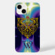Elegant, unik, färgstark 3D-digital konst, hi tech juvel: guld hjärta, keltiska knop, stiliserade djur, vibranta, glanga gem-stenar, blått,rosa,lilac fuchsia violet Organiskt frakttal swirls,vinkar. Mycket exakt design, modellering och rendering av Bulgan Lumini (c) .Part från serien Hyper Talismans.