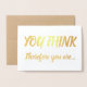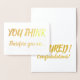 Gratulera till en stor professionell av din kollega, vän eller älskad med detta kort! Budskapet är en lek på filosofen René Descartes fras "Je pense, donc je suis [I tänka, därför är jag]" ("cogito ergo sum"). Kortets framsida lyder: "DU TÄNKA" följt av "du är därför..." i guld-foliepensel (penseldrag), skriv ut och skriv ut skript. När kortet öppnas fortsätter texten: "TENURED! Grattisar!" i en matchande guld-ton. Själva kortet är vitt. Perfekt för vem som helst när han får akademisk praktik!
