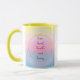 Pretty yellow, pink, and blue blends in a yellow and blue ring circle, with the affirmation, I am loved, loving, and lovable, is printed on custom mugs. The text can be customized on the template forms. The design is printed on both sides. Be sure to customize the text on both sides. Thank you for shopping at PositiveAffirmation on Zazzle.