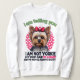 "Funny and adorable Yorkshire Terrier sweatshirt perfect for proud Yorkie moms and dog lovers. This cozy dog owner gift features a cute graphic of a Yorkie puppy wearing a red bow, along with the humorous quote: 'I am telling you I am not Yorkie, my mom said I'm a baby and my mom is always right'. It's an ideal gift for Mother's Day, birthdays, or any occasion to show off your love for your pet in a sarcastic and charming way".