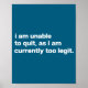 I Am Unable To Quit As I Am Currently Too Legit Fu Poster