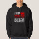 This hoodie is much better than I expected. top quality, true sizing, and really comfy. I was a bit worried that the lettering would be too dark on the navy blue hoodie, but once it arrived it was perfect. Easy to see the words, and the quality of the wording is fabulous. I will be buying more hoodies in future