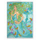 Härlig sjöjungfru som omges av fisken, som hon flyter i det djupblå havet!