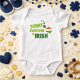 En söt bodykostym i baby precis i tid till St. Patrick's Day, den här artikeln innehåller grafisk text med texten "Today All is Irish" i roligtens teckensnitt för grönt. Det finns ett klöver med bild i den irländska flagga. Köp dina bilder idag! med PretypeGrafik Design (https://www.etsy.com/shop/Prettygrafikdesign)