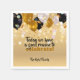 Modern personlig papper napkindesign med guld, vita och svarta ballonger, konetti, bokeh ljus och gnistor på guld-bakgrund. Texten är helt och hållet anpassade.
