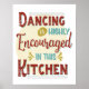 Dancing uppmuntras starkt i den här Poster av köket - förvandla köket till en dans golv när du går över rummet för att laga mat, servera eller bara släppa håret efter en stor dag. Den här smakliga poster är särskilt gjord för dina köksväggar. Det innehåller också en återbildsgrafik i stil med budskapet: Dancing är mycket uppmuntrande i det här köket. Gör roboten eller till och med mashpotatisen ensam eller inbjudan alla dina vänner för att komma ner medan du hugger ner i rummet där all magi händer.