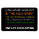 I detta hus tror vi på den heliga andan, den heliga kristna kyrkan, helgon, syndernas förlåtelse, kroppens återupplivande och livet evigt. Lev din tro högt.