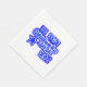 A White Standard Luncheon Paper Napkin, = optional, with a Drawing/Design, in navy blue, with a lighter blue stripe through the letters, and numbers and a star, = (Drawing/Design by P.J.M.) on it.
