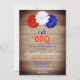 Jag gör BBQ med patriotiska röda, vita och blå blommigtar mot bakgrund av rustiskt trä
