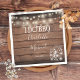 Söt string ljus och Mason burk dekorerar dina speciella uppgifter om förlovningsfest firande som är angivna i elegant typografi på en rustik träbakgrund. Designad av Thisisnotme©