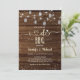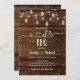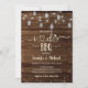 Den här inbjudan till elegant innehåller ljus och Mason burk med en rustik träbakgrund.