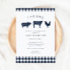 Jag gör BBQ Vintage Navy Gingham Inbjudningskort för möhippan