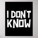 I Don't Know Funny Sarcastic Saying Long Sleeve Poster