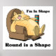 En tecknad av en tjock kattlås i sin favoritstol med ord I i Shape, Round är en Shape som omger den. Vi kan inte alla ha kroppar av en Gud. Låt världen skratta åt dig