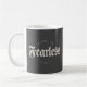 Christian Classic mugg med lätt grått Gothic-skript på svart bakgrund. Börja din dag med din favoritkuppa och kom ihåg med Gud att du är orädd och inte ensam. Bibelverse: I Gud är jag orädd 2-tid 1:7