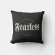 Christian kudde med lätt grått Gothic skript på svart bakgrund. Gör ett profetiskt uttalande om att ni är orädda i Gud. Bibelverse: I Gud är jag orädd 2-tid 1:7