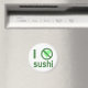 Jag hatar sushi. Lustigt designade användor grönt brev, ett grönt hjärta och internationell-tecknet "NO" för att läsa "Jag hatar sushi". För dem som inte "hjärta" det.