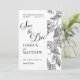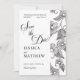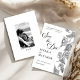 This beautiful floral Save the Date card features a verse from the Song of Solomon: "I have found the one whom my soul loves." The front displays elegant black-and-white floral designs alongside beautiful calligraphy. On the back, there is a photo of the couple. To customize your card, simply click "Personalize This Design," upload your photo, and enter your details. Zazzle will handle the rest.