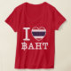 Baht är Thailands valuta. Den är indelad i 100 Satang. Bahten, liksom pundet, kom från en traditionell massenhet. Dess valutavärde uttrycktes ursprungligen som silver med motsvarande vikt (nu definierat som 15 gram) och var i använda troligen lika med tidigt som Sukhothai-perioden i form av kula mynt, på thailändska som phot duang. Dessa var biet av silver i fast form, som omvandlades till olika vikter som motsvarade ett traditionellt system med enheter som sammankopplades med enkla fraktioner och många, varav ett är baht. År 1902 började regeringen öka värdet av bytet genom att följa alla ökningar av värdet på silver mot guld, men inte minska det när silver prisa sjönk. Från kl. 21.75 baht = ett brittiskt pund, valutan ro i värde fram till 1908 fastställdes ett fast belopp på 13 baht = ett pund. Detta ändrades till tolv månader 1919 och sedan, efter en period av instabilitet, till elva år 1923. Under Världskrig II fastställdes baht till ett värde av en japansk yen. Mellan 1956 och 1973 var baht peggad till US-dollarn med en växelkurs på 20,8 baht = 1 dollar och 20 baht = 1 dollar fram till 1978. En starkare amerikansk ekonomi ledde till att Thailand steg om sin valuta från 25 till dollarn från 1984 till den 2 juli 1997, när land stoppades av finanskrisen i Asien. Banken flöts och halverades i värde och nådde sin lägsta kurs på 56 gentemot dollarn i januari 1998. Sedan dess har den stigit till omkring 30 dollar. Baht var ursprungligen känd för utlänningar under den malaysiska/portugisiska termen, tical, som användes i den engelska texten om sedlar fram till 1925. Lustigt sydostasiatiskt Humor ~ I Heart (Kärlek) Baht (Thai Money). Vår butik har ett underbart urval av T-shirts, hattar, mugg och mycket mer, allt med design inspirerade av Isaans dialect och thailändska.
