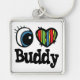 I Heart (Kärlek) Buddy Fyrkantig Silverfärgad Nyckelring
