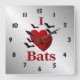 I Hjärtat Fladdermöss Wall Clock Fyrkantig Klocka