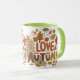 Den här härliga kombinationen mugg har den charmerande designen "I Kärlek Autumn" på två perfekt parade muggar. Njut av dina favoritdrycker med en vän eller älskad hett samtidigt som du firar säsongens skönhet. Perfektens gåva till höstentusiaster!