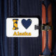 Leuke bagagelabel met de tekst: i kärlek Alaska (i hjärta Alaska) Het hart met de vlag van de staat Alaska. Blauw en geel.