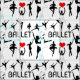 En sömlös mönster I kärlek-ballett. En röd hjärtform i stället för ord "Kärlek". Vita färg-dansare. Black färg ballerina längst fram. Den positiva utformningen för mörk färg bakgrunder. Du kan ändra färg i bakgrunden, mönster, storlek och vinkel för rotation. Var bara kreativ, använda den här vackra väven för dina projekt och var lycklig!