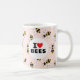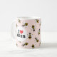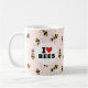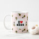 För den budbärande apiarist, levande trädgårdsmästare eller vänskapligt sinomolog visar mugg en passion för pollinerare med den klassiska texten "I Heart Bees" på en vit cirkel över ett mönster av illustrerade och vänligt tittar bin på en mjuk rosa.