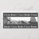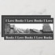 Ett bokmärke med min ursprungliga, realistiska penna teckning i en grupp bokar, en del staplade i en stapel och andra stod eller lutade.