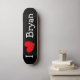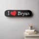 Jag Kärlek Bryan med en ljusröd hjärtdesign på en svart skateboard med vit text. Om du vill skapa din egen skateboard-design kan mallen enkelt ändras för namn som är 5-6 (5-6) brev långt.