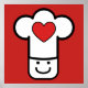 Illustration av en kock med ett rött kärlek-hjärta på hatten. Bakgrunden till färg kan ändras.