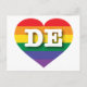 Det här vykortet har ett hjärta med regnbågsdesign och det feta, vita, stora brev DE, officiellen förkortning för Delaware, det första pridet. Baksidan av vykortet är tom och väntar på personligens text eller handskrivna känslor. Visa ditt sanna färg, stödja giftermål jämlikhet och fira gay pride.