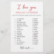 Köp St. Valentines day-spel och njut av högkvalitativ I kärlek du värld runt-kort till party! Matcha varje språk med rätt översättning av "I kärlek you"-svar: 1-J, 2-L, 3-I, 4-M, 5-O, 6-N, 7-K, 8-G, 9-C, 10-A, 11-H, 12-B, 13-D, 14-F, 15-E Black and White-design.