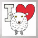I Kärlek får är det ett stort får som står framför en "I Heart"-symbol. Roligt grafik för får fläkt, jordbrukare, vänner och vem som helst som kärlek får!