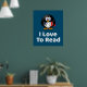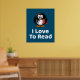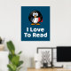 Cute och lustigt "I Kärlek to Read"-penguin håller bokar.