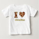 En lekfull design med frasen "I Kärlek Giraffes" som är märkt på framsidan. "I" representeras av ett giraffmönstrat "I" i brev, och hjärtformen är också fylld med ett girafftryck som betecknar kärlek för dessa fantastiska varelser. Ord "Giraffes" kompletterar meddelandet med ett roligt, barnvänligt teckensnitt. Den här vita, kort-ärgade t-shirt-skjortan är perfekt för unga djurentusiaster och ger ett sött och pedagogiskt tillskott.