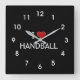 I Kärlek Handball-anpassningsbar-designad väggklocka. Vit text och rött hjärta på svart bakgrund.