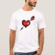 Clip Art med rött hjärta och svart sida med gyllene ord I kärlek dekorerade du med blommor och snurrar, med en pil genom hjärtat
