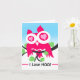 Jag Kärlek Hoo! Grattis på Alla hjärtans dag pappert hälsningskort med ett sött rosa uggla med rosa hjärtan i ögon. Den söta uggla sitter på en träd gren täckt med ljust grönt löv. Jag Kärlek HOO! Art, bild och versa © Shoaff Ballanger Studios.