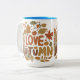 Upplev höstens charm med den här snyggten två-tonsfärgen mugg med den härliga "I Kärlek höst"-utformningen. Det kontrasterande färg tillför ett modernt drag till det klassiska mugg, skapar det en perfekt för dig själv eller för ett höst älskare. Njut av din favoritvarma dryck när du är omgiven av säsongens mysiga vibes.